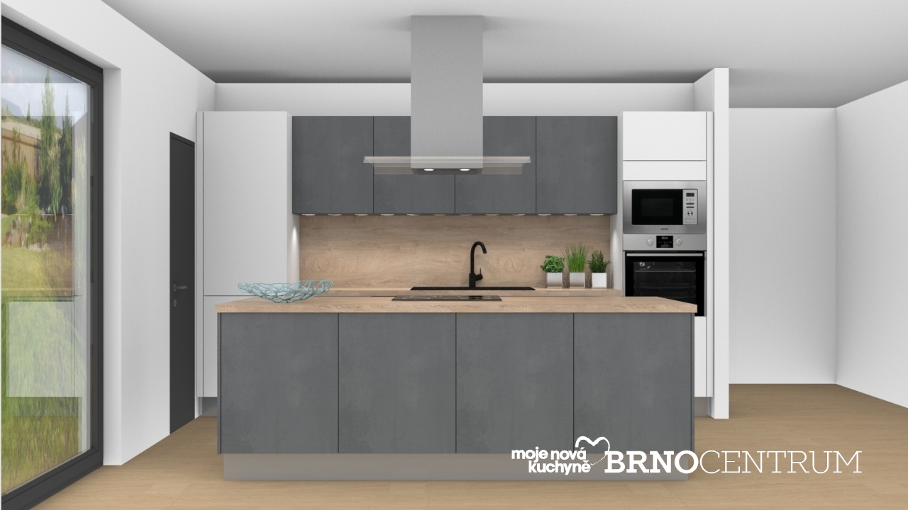 Kuchyně Celine v dekoru antracitového betonu v kombinaci bílé matné Elly.