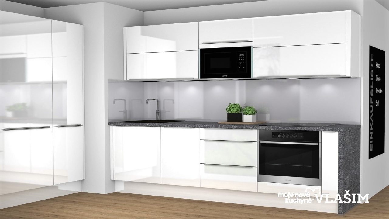 Druhá varianta je s praktickým vysokým sloupem s troubou a mikrovlnnou troubou nad sebou.