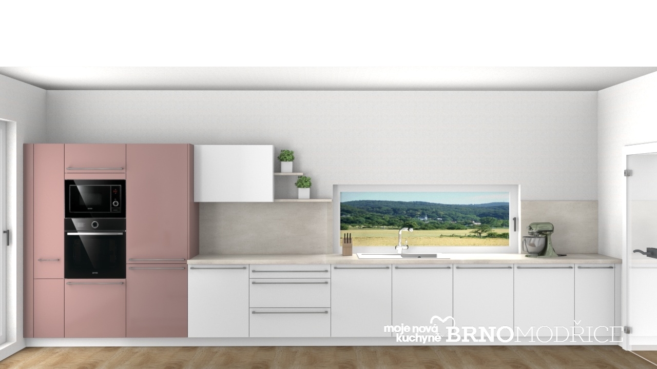 Ella / Greta„Holčičí“ bílorůžová kuchyně