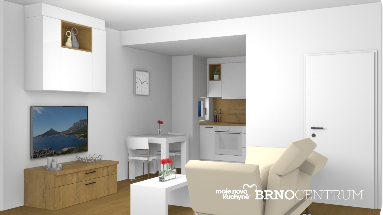 Velice pěkně vypadá sladění kuchyně s obývací částí, která na kuchyň navazuje. Cena obývací části je 29 053,-