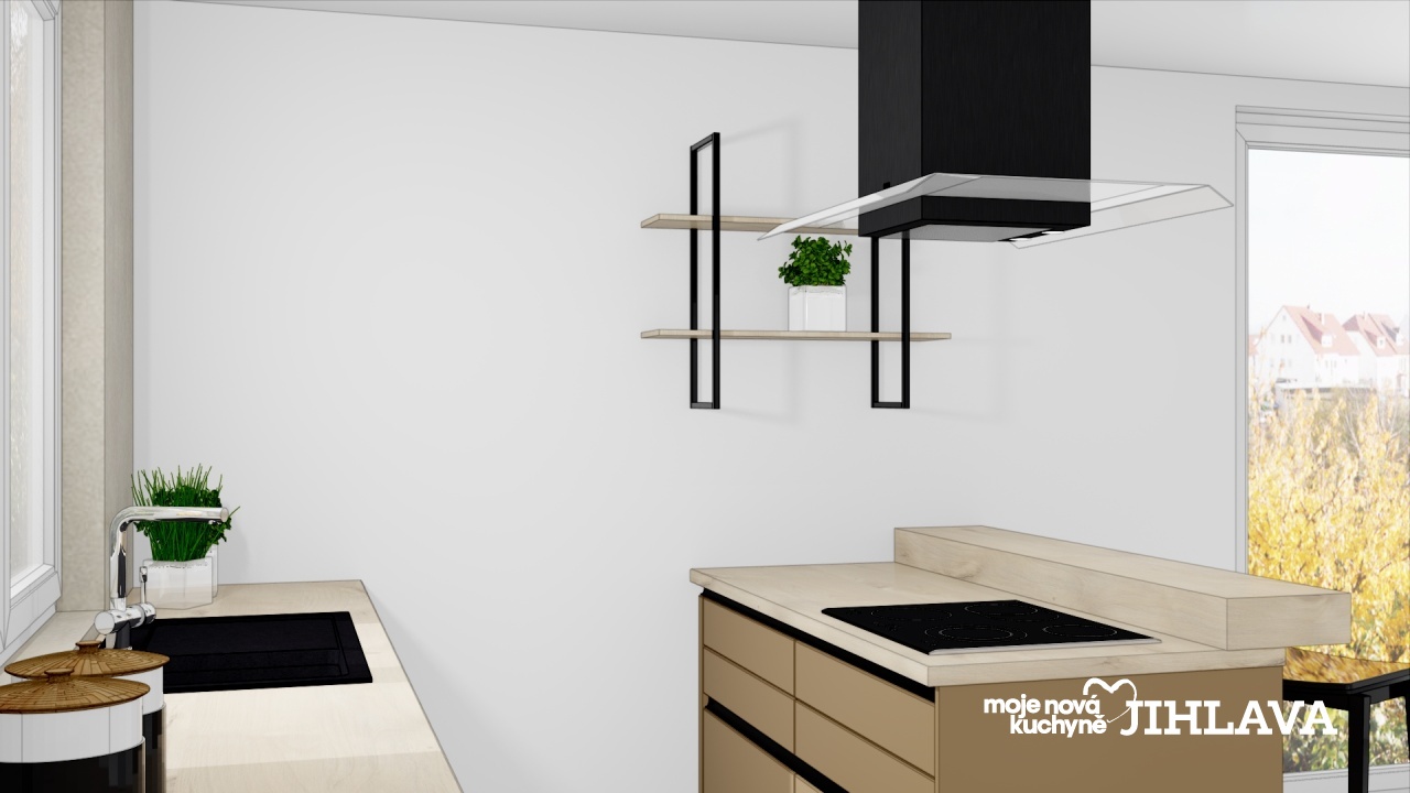 Za kuchyňskou linkou je plánovaná stěrka v béžovém odstínu.