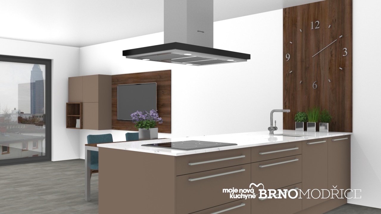 Toto rozmístění spotřebičů lze vidět v kuchyňském studiu SOHO v Brně Modřicích.