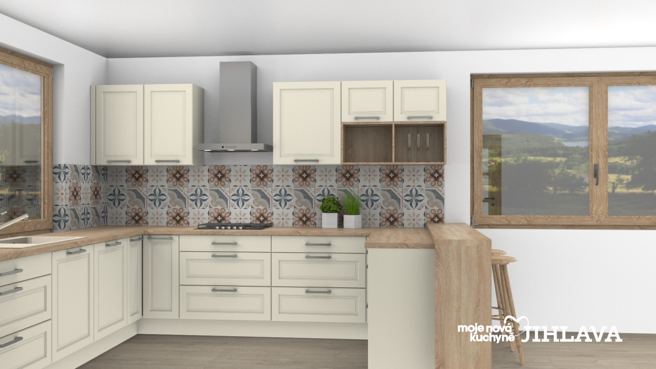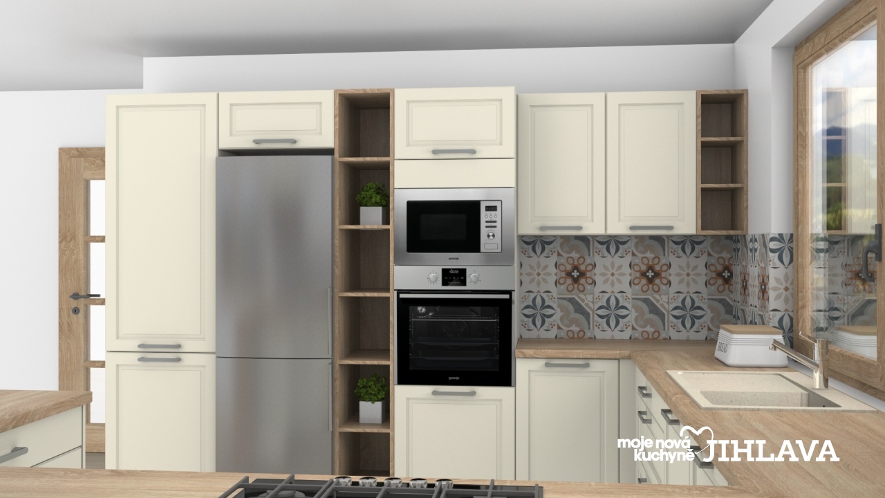 Rustikální kuchyň MARA v barvě slonové kosti.