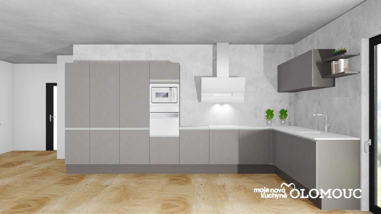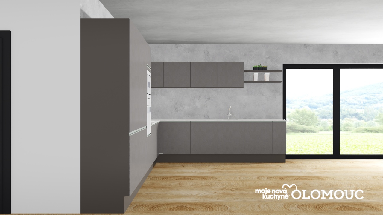 Kuchyně je dispozičně do tvaru L a má integrovanou úchytku.