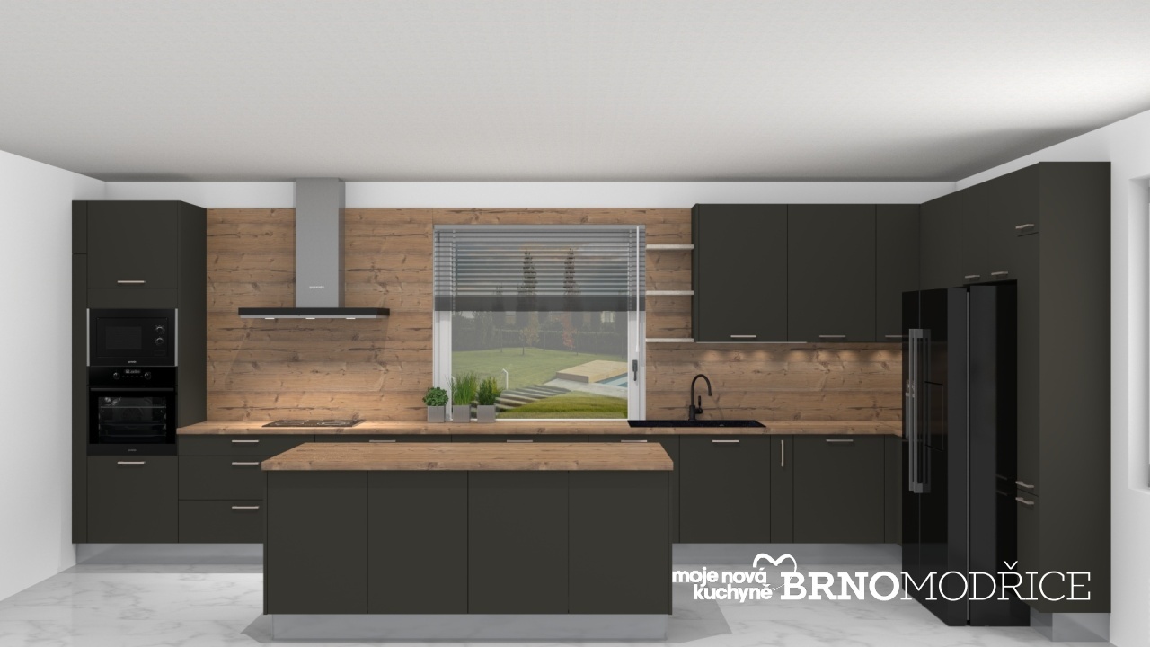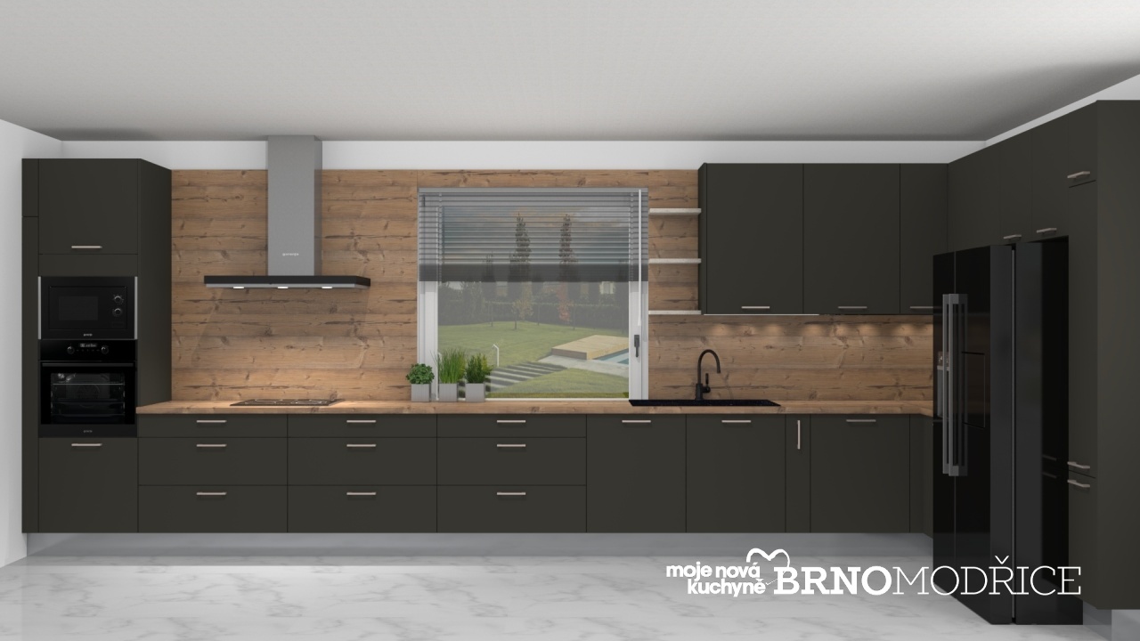 EllaVelká kuchyně v tmavě šedé se smrkem