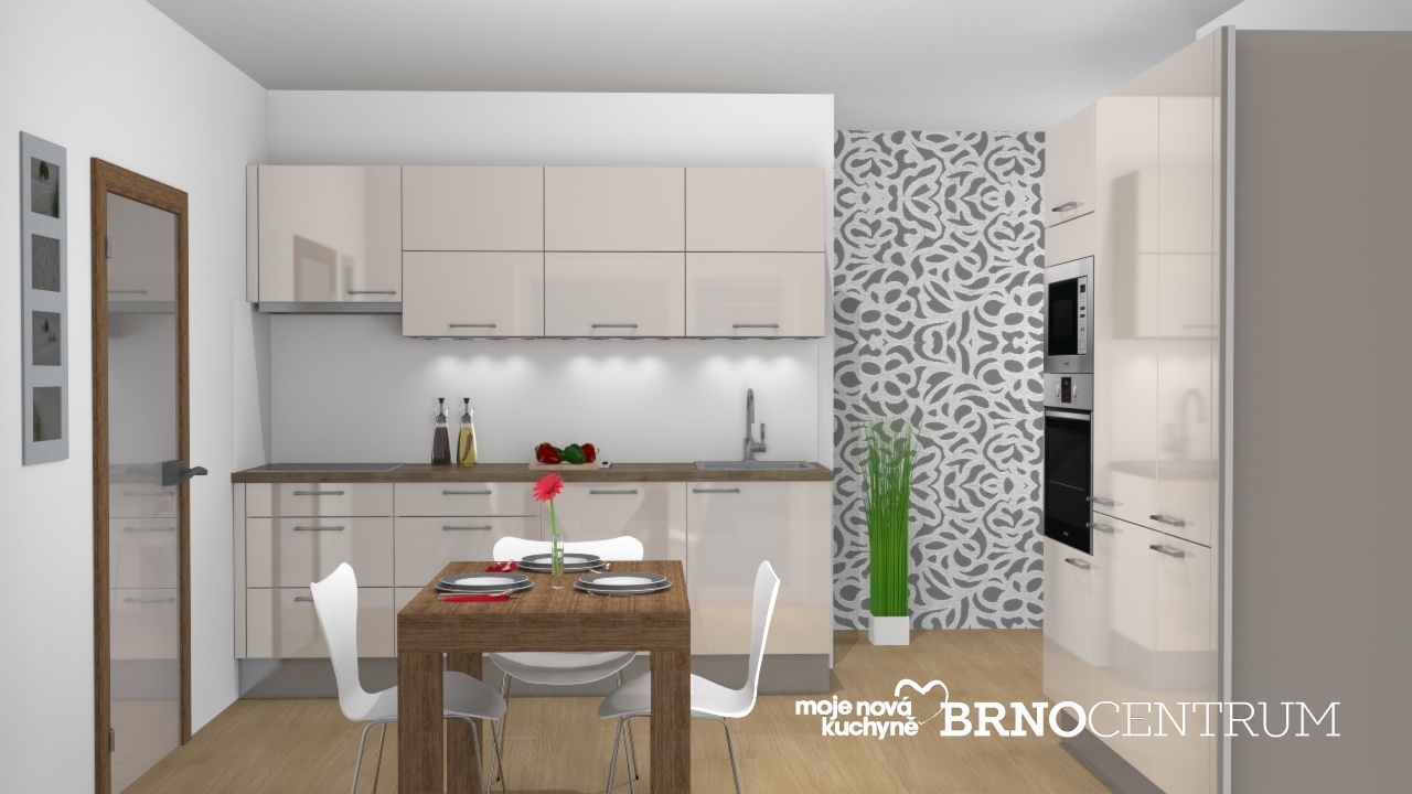 Volbou provedení skříněk ve vysokém lesku, dojde k optickému zvětšení místnosti.
